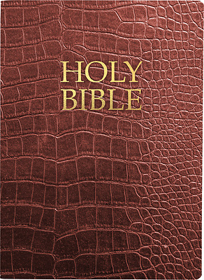 With a distinctive walnut-and-alligator brown bonded leather cover, this durable large print Bible makes a perfect gift that is sure to be treasured for years to come. The